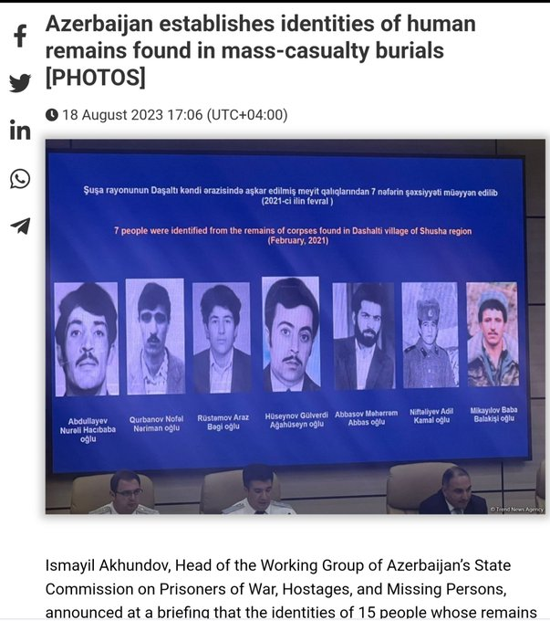 “Kütləvi məzarlıqlarda qalıqları tapılan 15 itkin düşmüş şəxslərdən biri Hüseynov Gülverdinin qızları 30 ildən sonra nəhayət ki, atalarının məzarlığına qovuşduğuna çox seviniblər”.