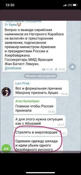 “Şəhid paltarını geyinirik və gedib günahsız rusları öldürürük”, – erməni istifadəçilər yazırlar.