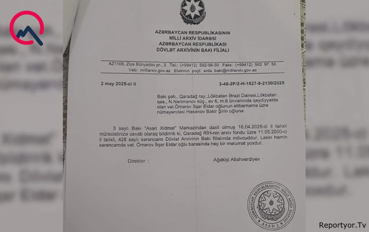 Bakının Qaradağ rayonu, Ümid qəsəbəsində yaşayan Jalə Abbasova və həyat yoldaşı qəsəbənin icra nümayəndəsi Hüseyn Babayevin onlara saxta sənəd verdiyini iddia edirlər.