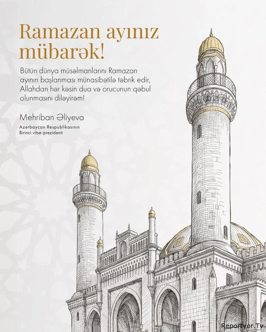 "Bütün dünya müsəlmanlarını Ramazan ayının başlanması münasibətilə təbrik edir, Allahdan hər kəsin dua və orucunun qəbul olunmasını diləyirəm!".